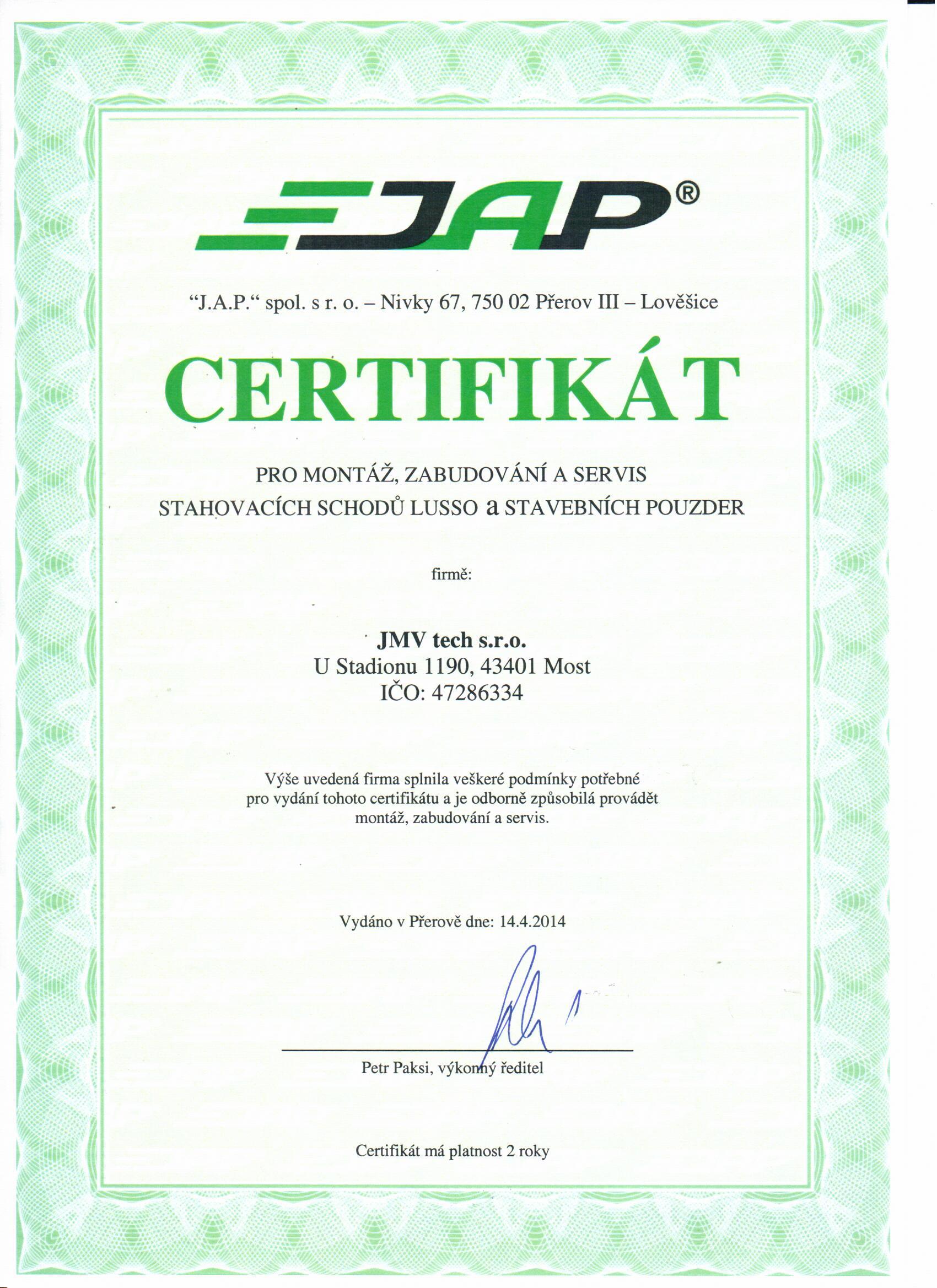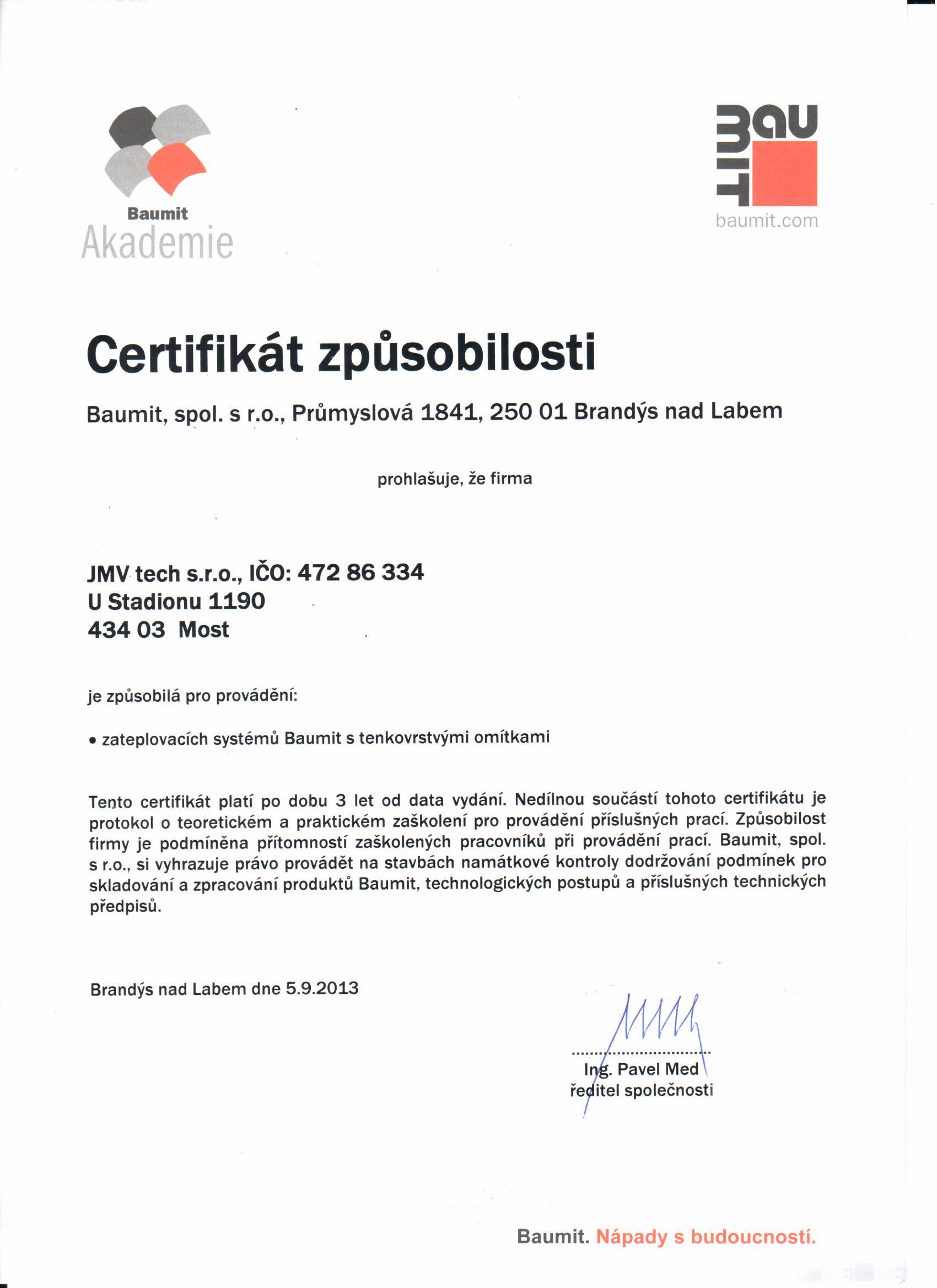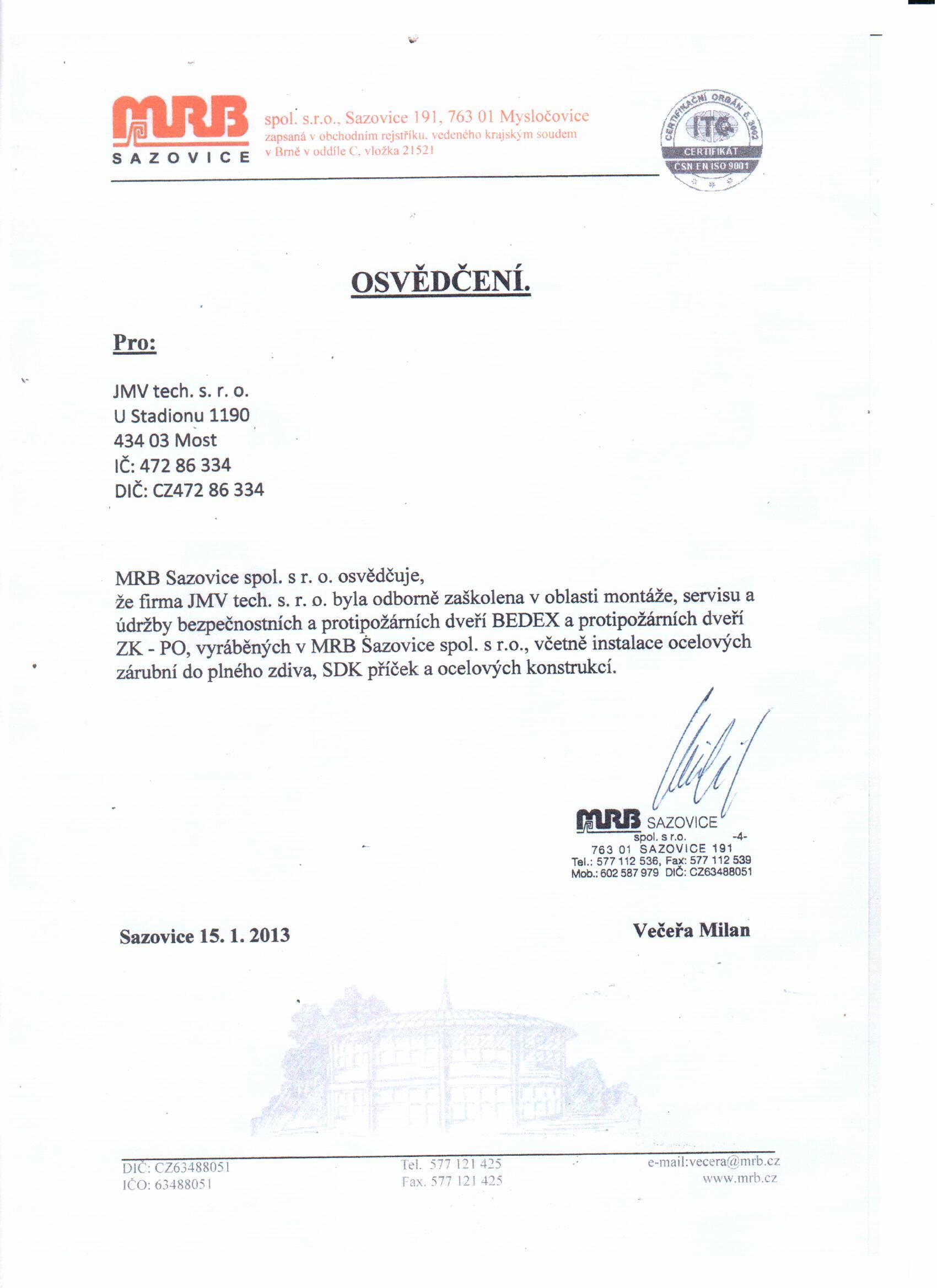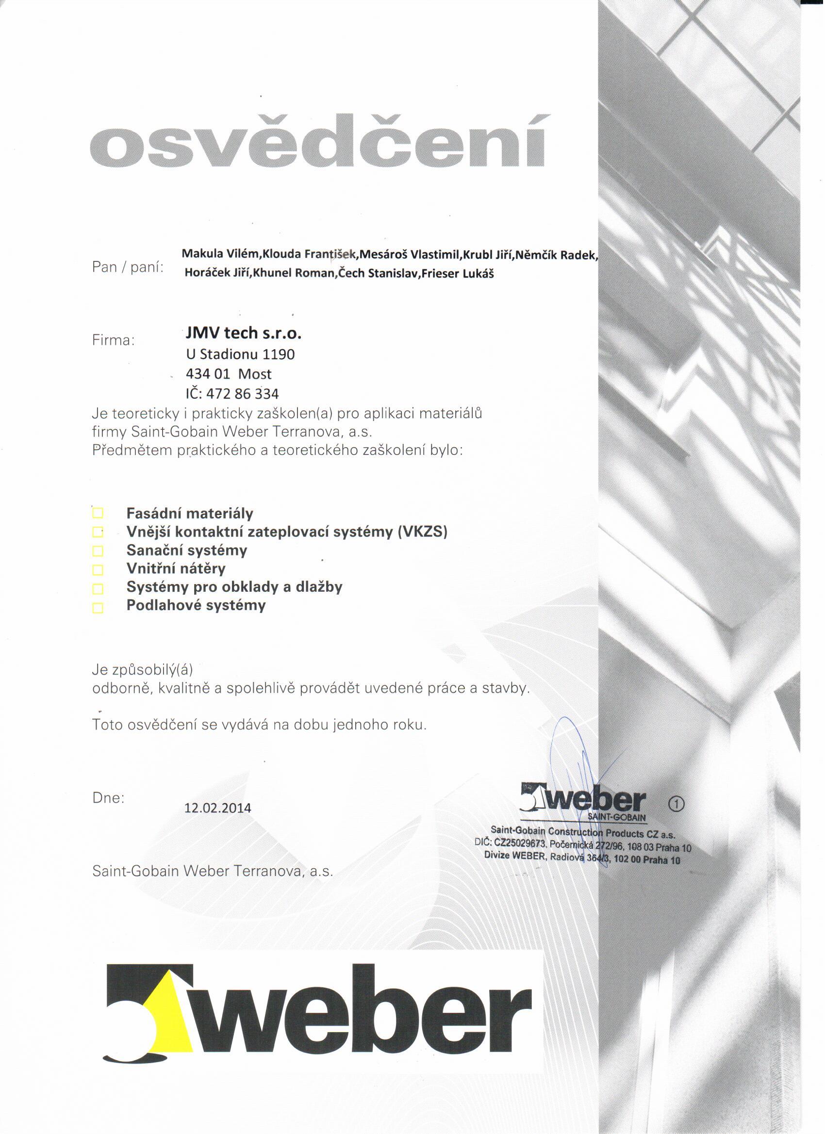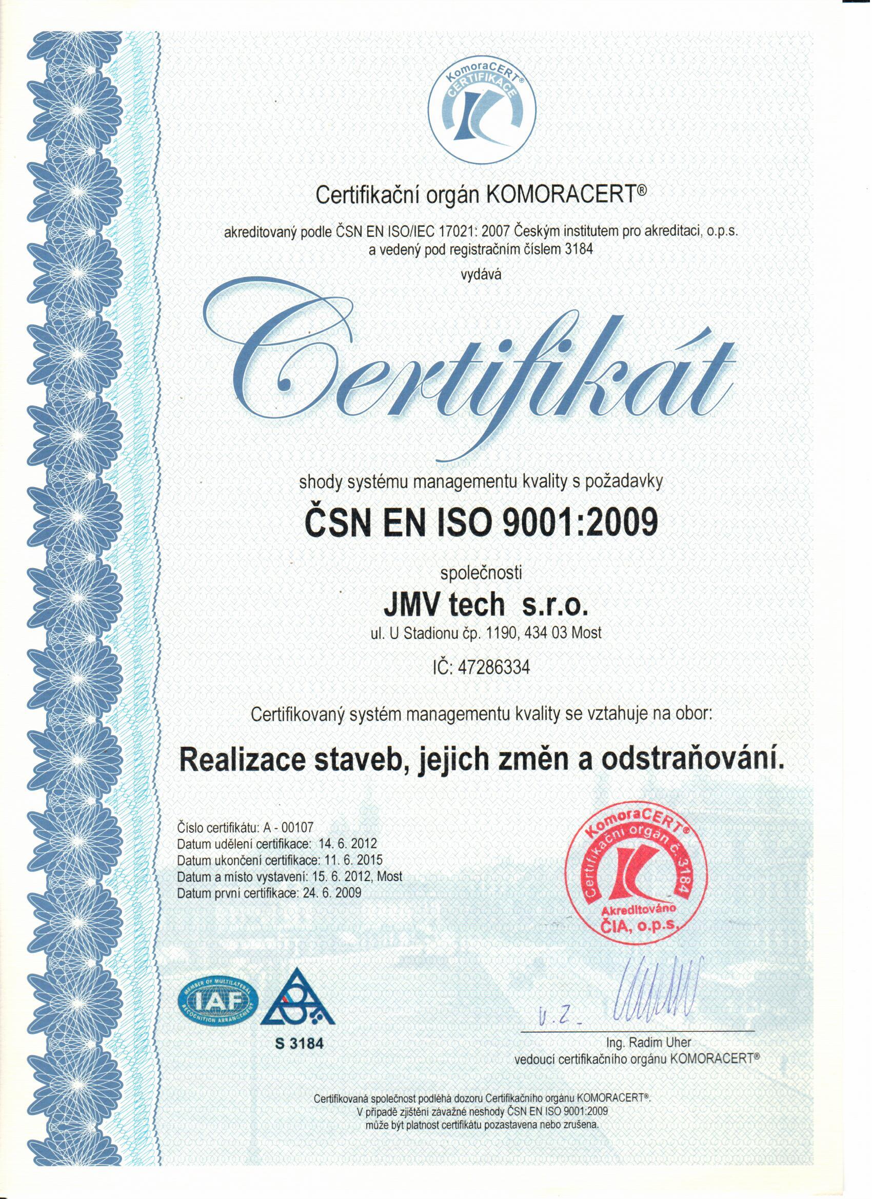 Naše společnost je pro Vás zárukou kvality, což dokazují získané certifikáty.